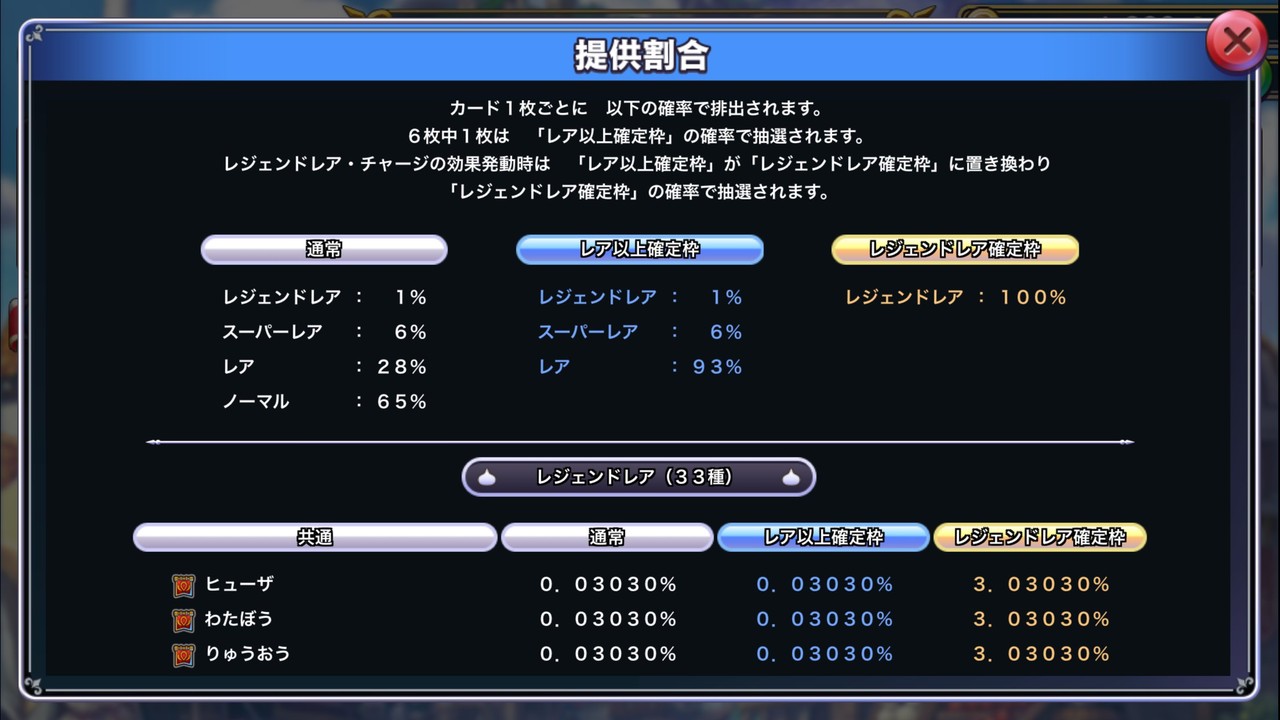 レジェンドレアが当たる確率が1%でレジェンドレアが33種類ある