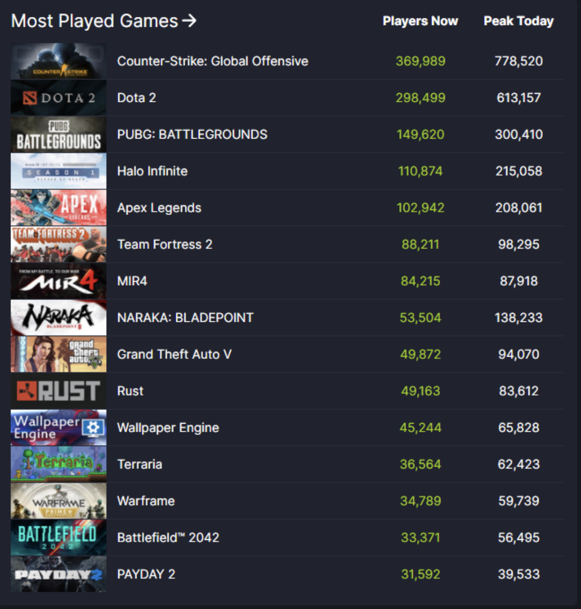 ゲームパスだしMSStoreの人も多いのにSteamの同接も多いんだな